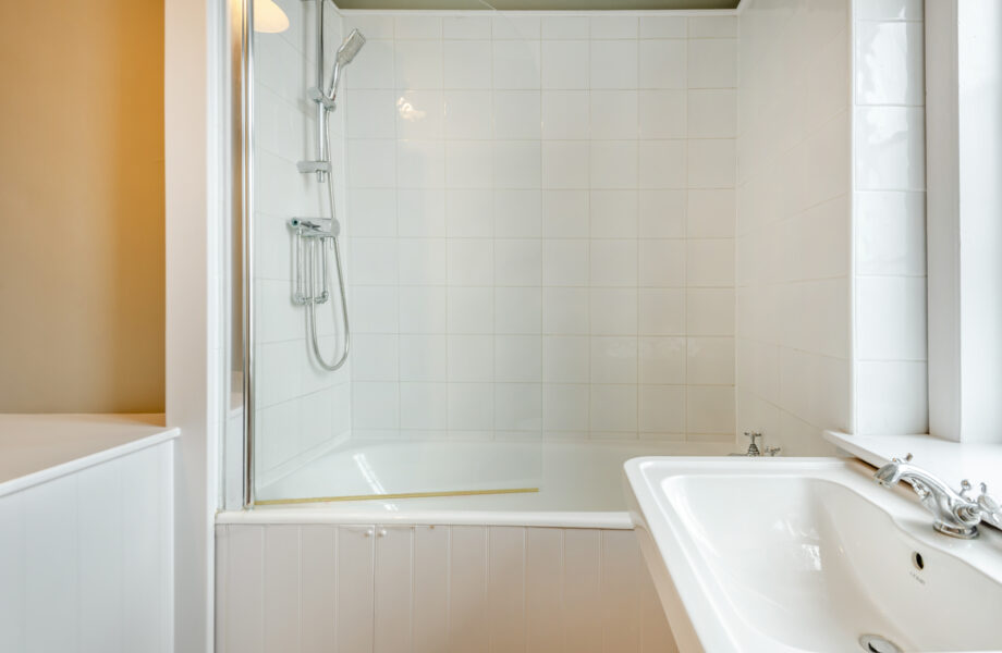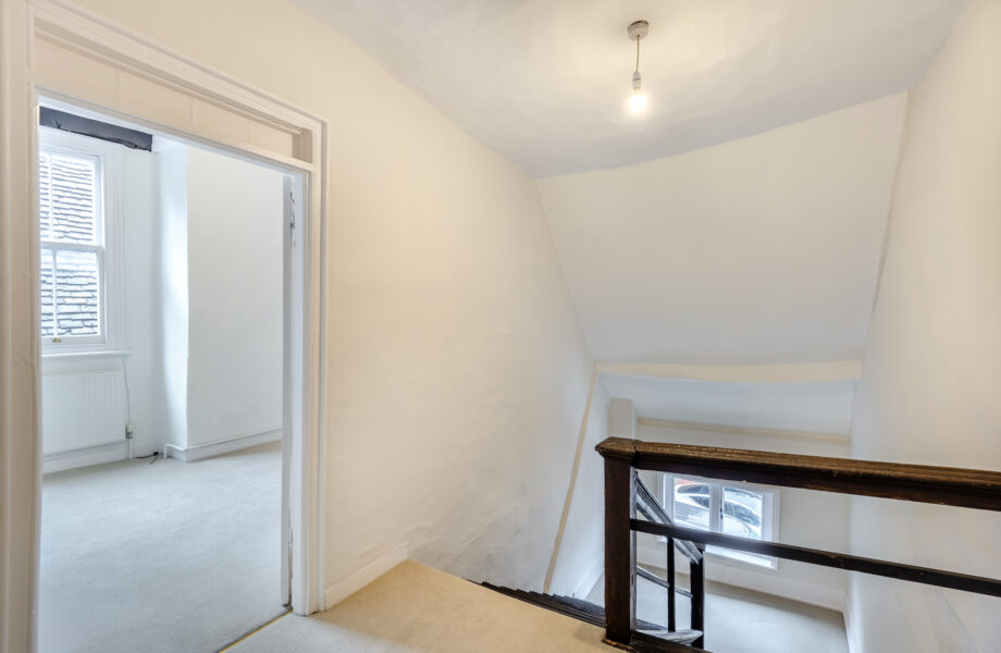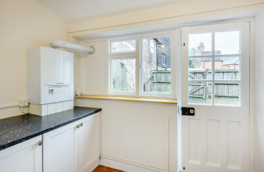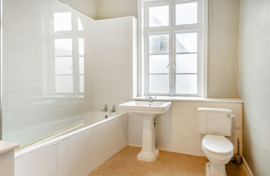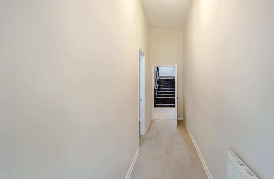 The entrance hall leads to the stunning original staircase, with living room, kitchen/diner/utility, and WC on the ground floor. On the first floor, to the front of the property, is a spacious bedroom, with the family bathroom to the rear. The second floor has two further spacious bedrooms. The house is carpeted throughout except for a wood-look laminate floor in the kitchen and bathroom. The kitchen includes white goods, all of which are integrated: washer/tumble dryer, dishwasher, and fridge/freezer. The bathroom has a large original enamel bath with shower over, hand basin, WC, heated towel rail, and shaver point. To the rear is a small courtyard.
