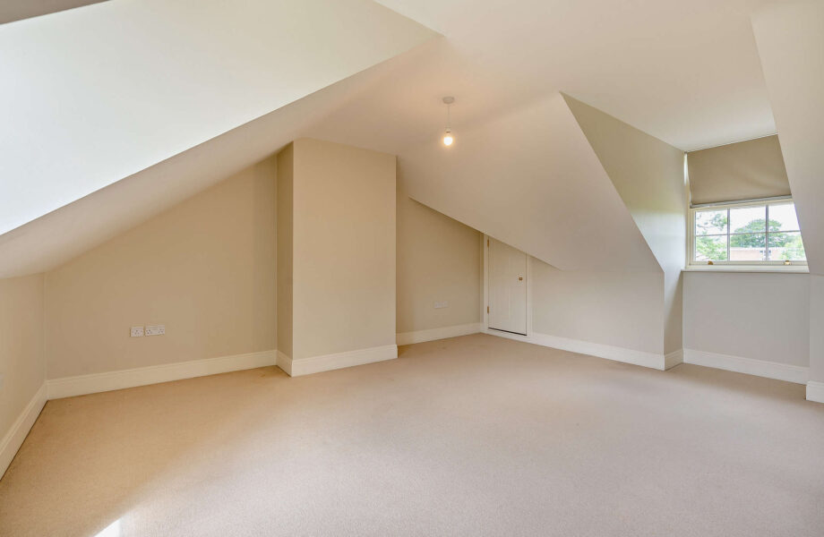 Two bedrooms are located on the first floor, one with an en-suite, along with a family bathroom. The second floor offers a degree of flexibility, with a large bedroom and a storage cupboard.